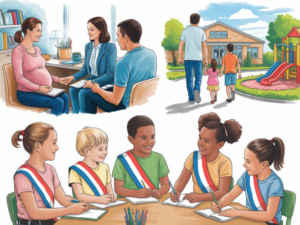 - Un accompagnement renforcé des parents, avec des lieux ressources, d’écoute et d’échanges accessibles à tous.